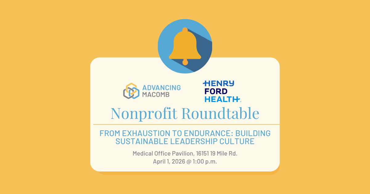 %0D%0A%0D%0AJoin Our Zoom Here https://us06web.zoom.us/meeting/register/80uNAyTySjKIK5kIkUk7Ww#/registration 16151 19 Mile Rd, 4th Floor, Conference Room #3Join us for a candid and practical conversation on leadership sustainability with Emily Moorhead (President, Henry Ford Health Macomb). Drawing on her experience leading complex healthcare operations, Emily offers a strategic and people-centered perspective on the growing reality of burnout, particularly in mission-driven environments where expectations are high and resources are often stretched. Come see Henry Ford Health Macomb and join us for this important discussion.