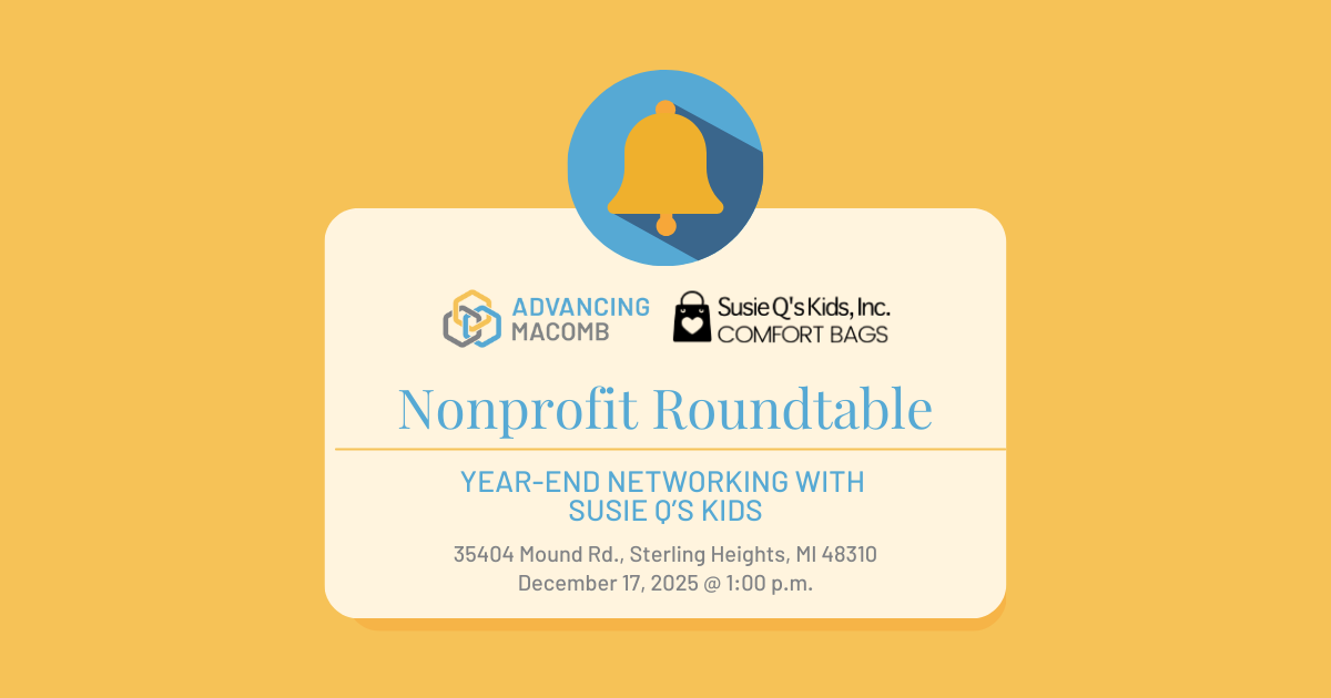 35404 Mound Road, Sterling Heights, MI 48310Please join us for our final Nonprofit Roundtable of 2025—a special year-end gathering that includes a site visit, networking, hands-on service activity, and lunch.